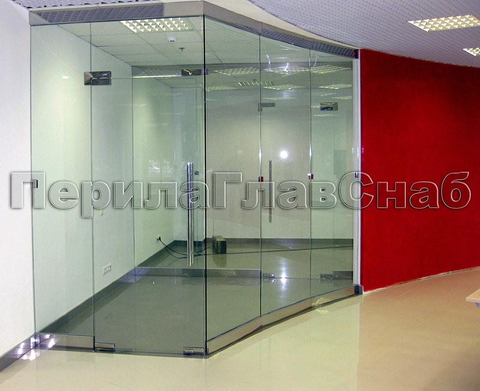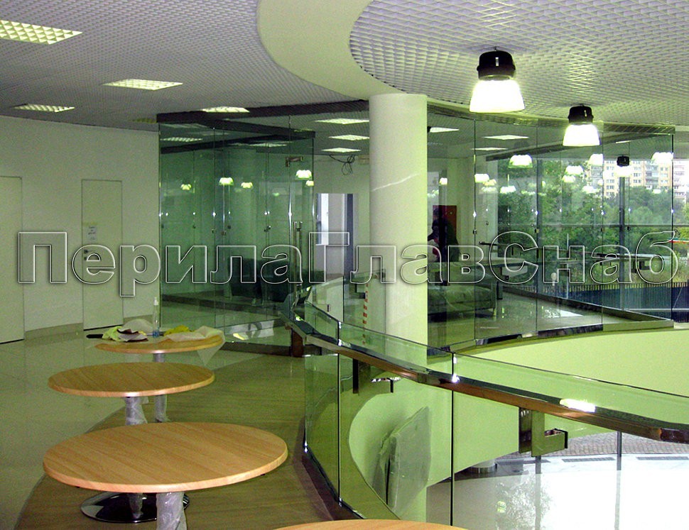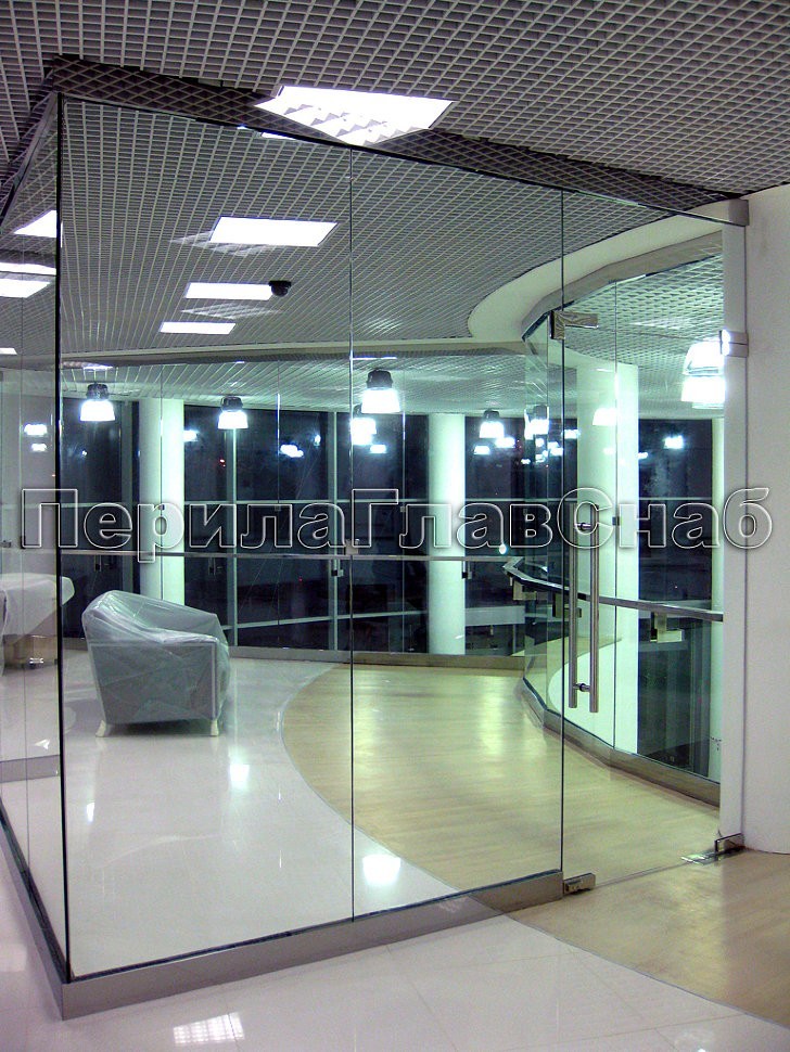 Кроме того, на том же объекте специально для заказчика были разработаны и установлены системы цельностеклянных офисных перегородок, витрины и стеклянных дверей на профильной фурнитуре типа «Классика».