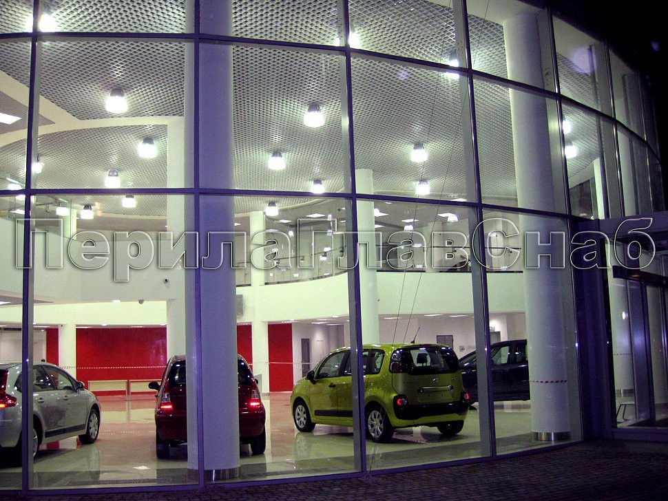 В автосалоне CITROEN был установлен комплекс ограждений из нержавеющей стали, а также ограждения с радиусным прямоугольным выносным поручнем на прямых стеклах атриума.