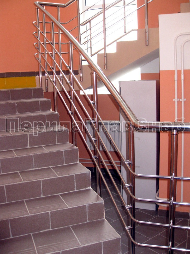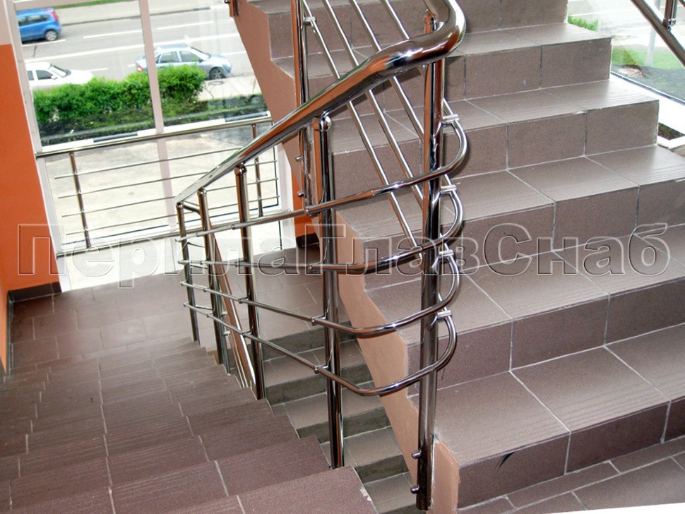 Крепление стоек было торцевое, так как по просьбе заказчика необходимо было максимально увеличить полезную ширину марша, согласно строгим требованиям безопасности.