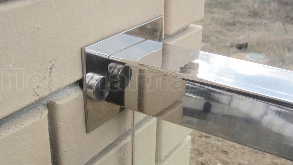 Крайне удачным является решение установить именно стеклянные ограждения на данном объекте: как стекло, так и стальной поручень отлично гармонируют на фоне кирпичной стены шоколадного и соломенного цветов