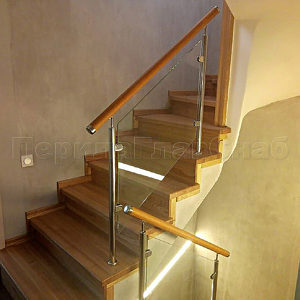 Дерево и стекло в нашем современном мире помогает создать пространство естественной окружающей среды Наш заказчик остался доволен конструкцией стеклянных ограждений, что конечно же очень нас радует. Дубовый поручень мы затонировали в цвет ступеней по каталогу SAYERLAC, завязка поручня была выполнена с помощью комплектующих из нержавеющей стали. Конструктив ограждений: ограждения из полированной из нержавеющей стали с закаленным стеклом, толщиной 8 мм.