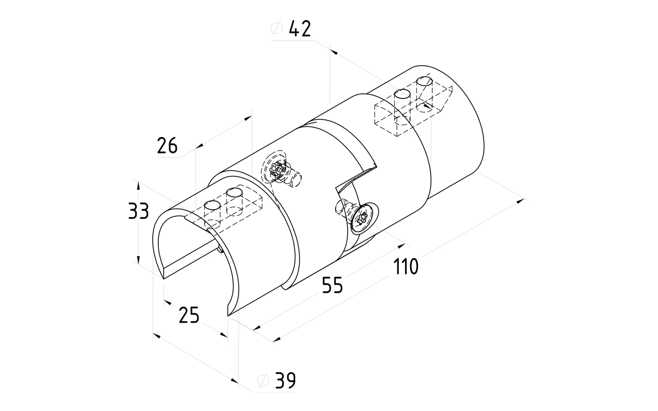 Соединитель поручня с пазом регулируемый, d=42,4 мм, полированный, AISI304 k195