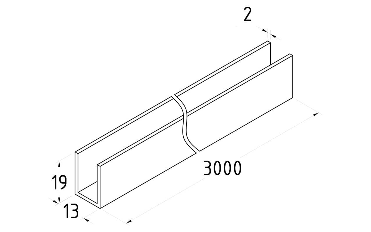 П-образный профиль 19x13, L=3000, алюминий шлифованный