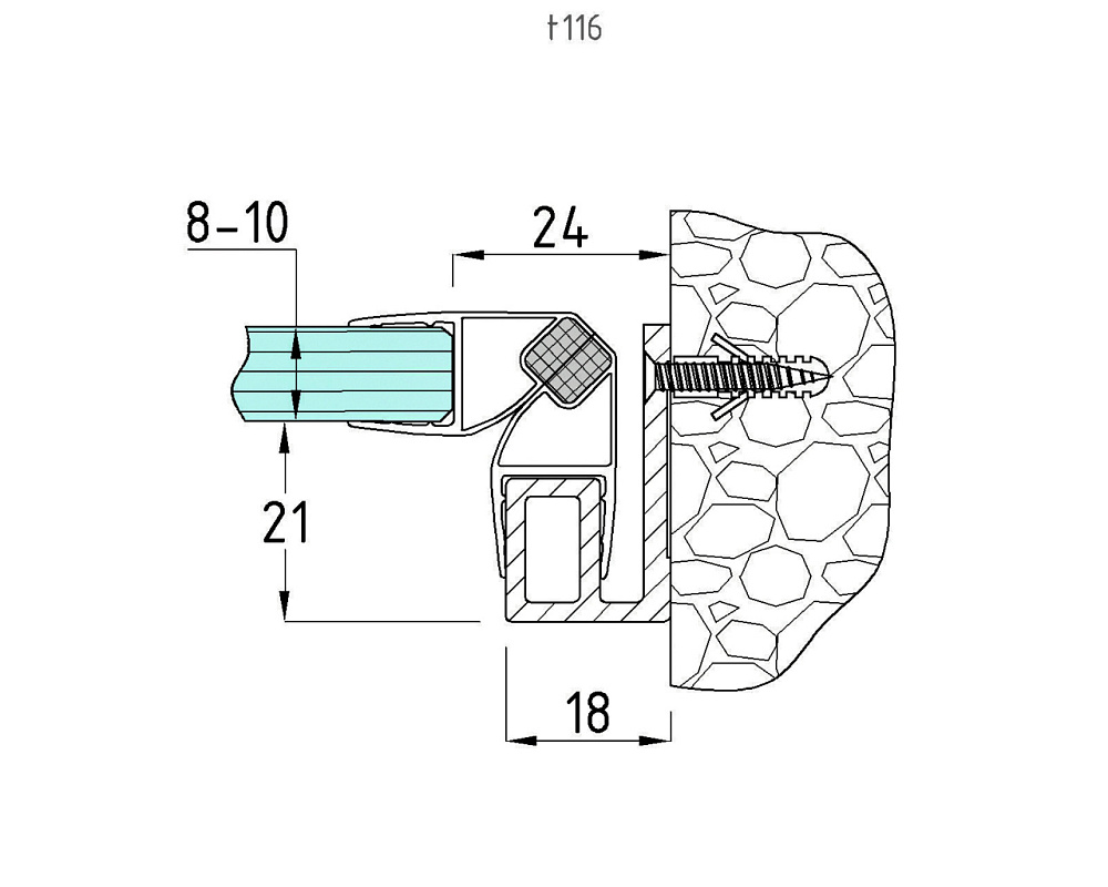 Используется в душевых перегородках в качестве опоры для установки уплотнителя.