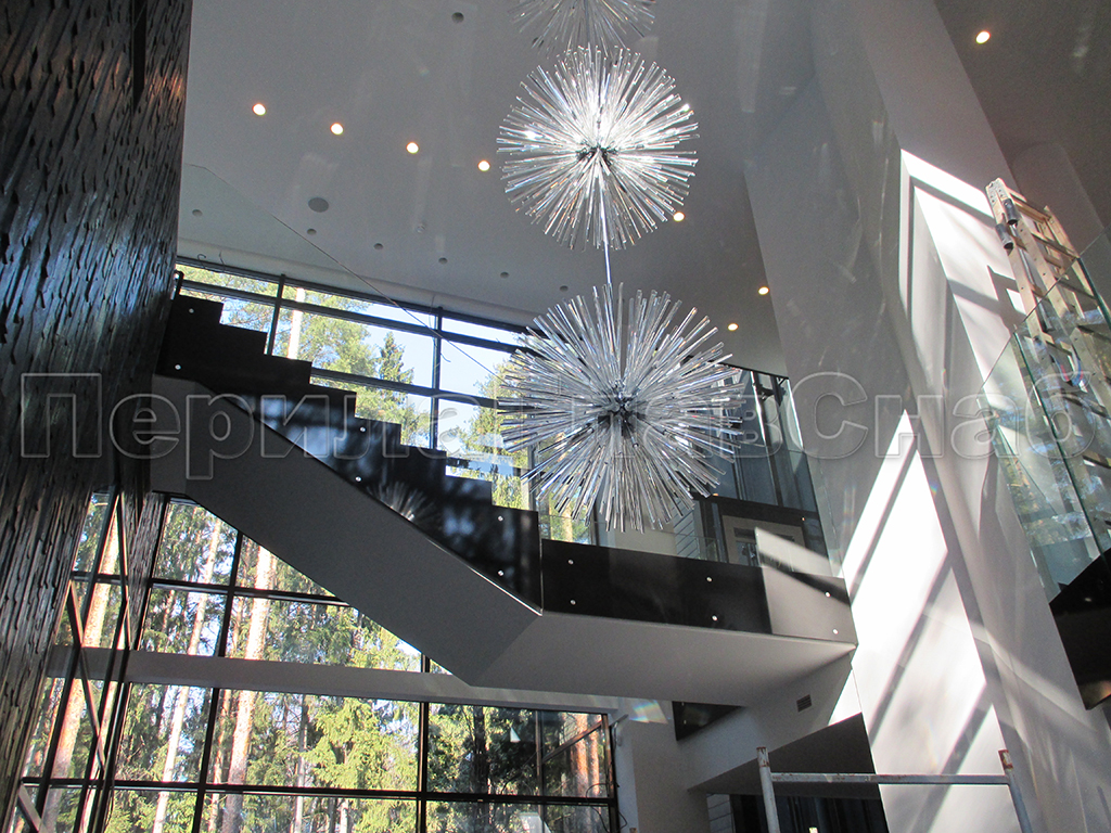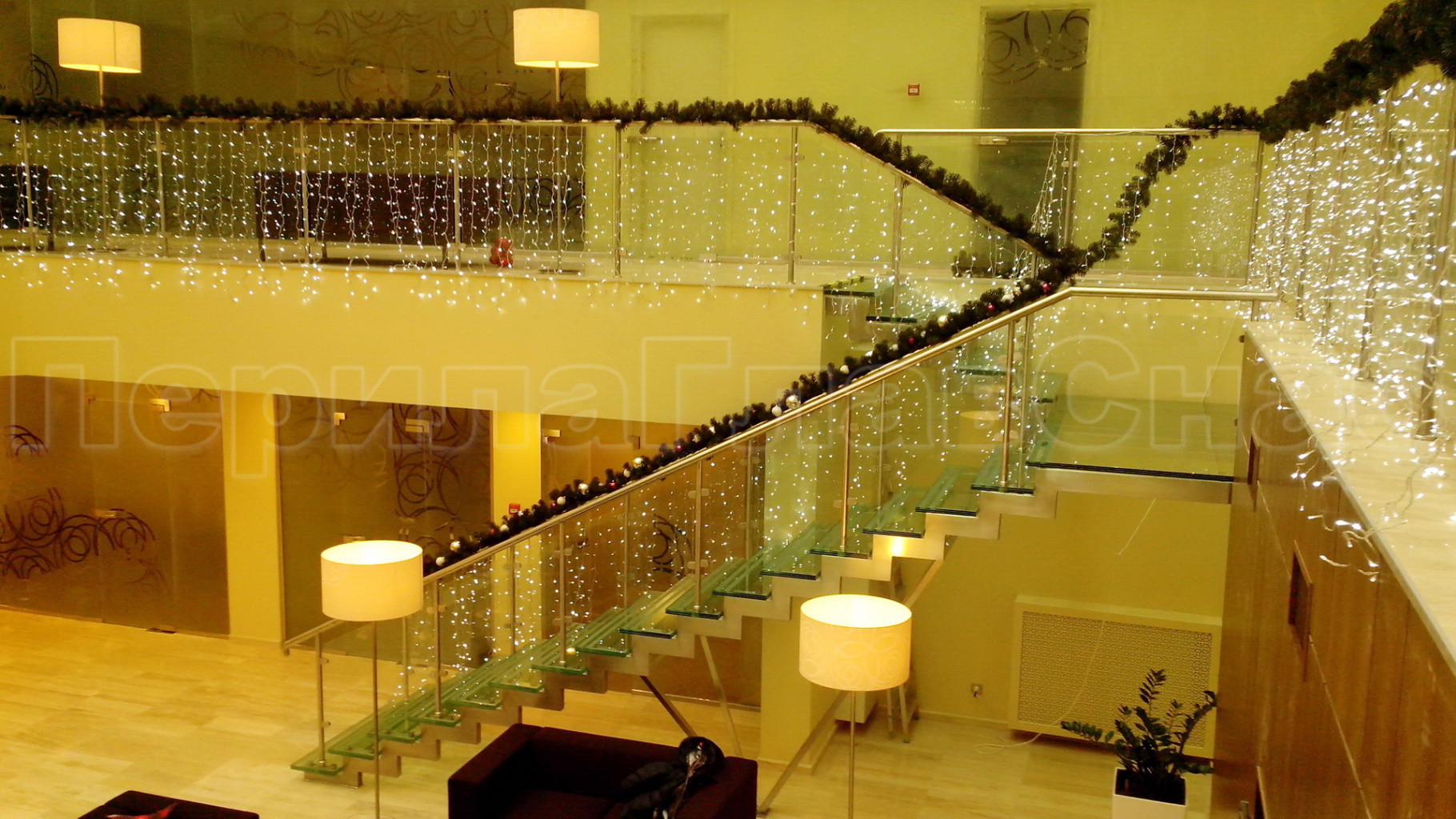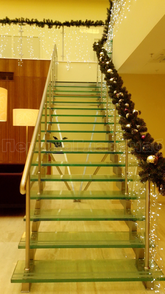 Ограждения лестниц на несущем стекле с подсветкой в Волгограде. Готовые проекты ПерилаГлавСнаб
