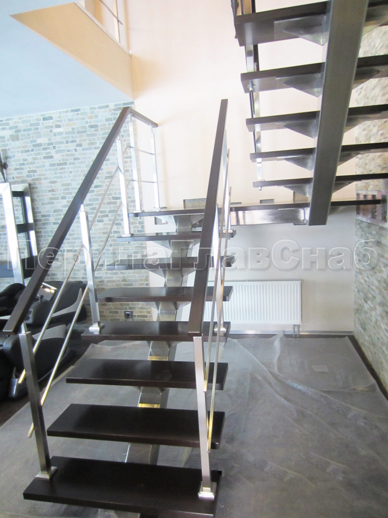 Ограждения лестницы без поручня с зажимными стеклодержателями и стойками в Волгограде. Готовые проекты ПерилаГлавСнаб