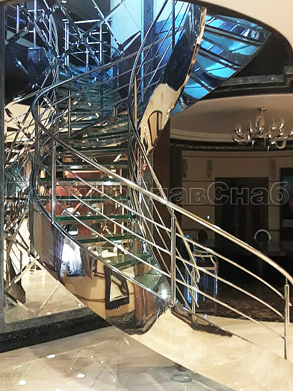 Стеклянные ограждения винтовой лестницы и баллюстрады в Волгограде. Готовые проекты ПерилаГлавСнаб