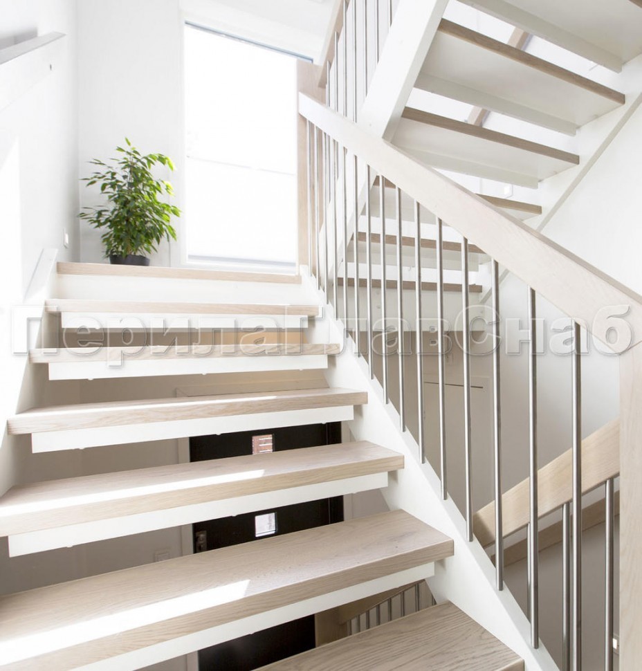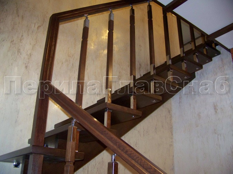 Ограждения со стойками в каждую ступень с квадратным деревянным поручнем без ригелей