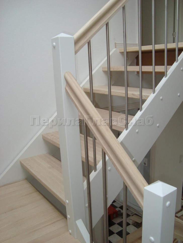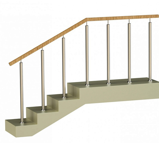 Ограждения с двумя стойками в каждую ступень с деревянным поручнем и без ригелей