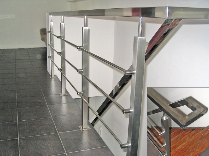 Четыре ригеля на сварке, круглый поручень и квадратные стойки