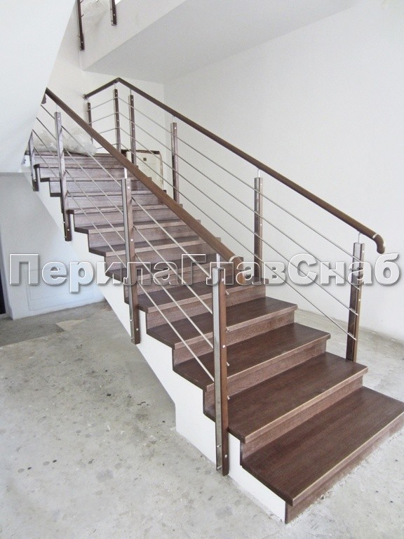 Ограждение со стойками из шлифованной нержавеющей стали с боковым крепежом, со вставками из дерева в Волгограде. Готовые проекты ПерилаГлавСнаб