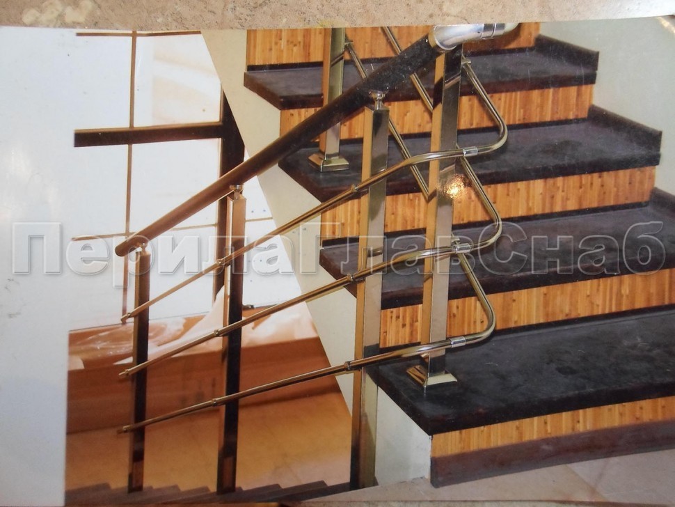 Лестничное ограждение с тремя ригелями и поручнем из латуни