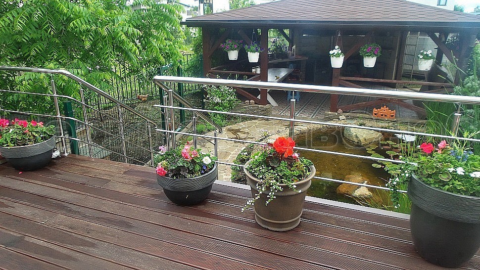 Три ригеля на сварке, круглый поручень и круглые стойки для крыльца