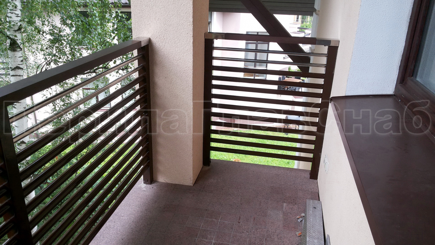 Четыре ригеля на держателях, квадратный поручень и стойки с деревянными вставками в Волгограде. Готовые проекты ПерилаГлавСнаб - фото 1 Четыре ригеля на держателях, квадратный поручень и стойки с деревянными вставками в Волгограде. Готовые проекты ПерилаГлавСнаб - фото 2