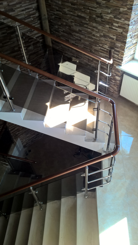 Нержавеющие ограждения без ригелей с деревянным поручнем в Волгограде. Готовые проекты ПерилаГлавСнаб
