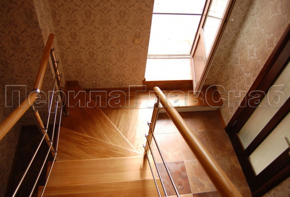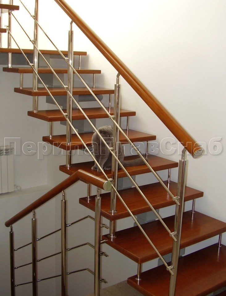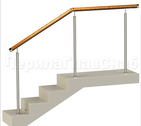 Ограждения с двумя стойками в каждую ступень с деревянным поручнем и без ригелей