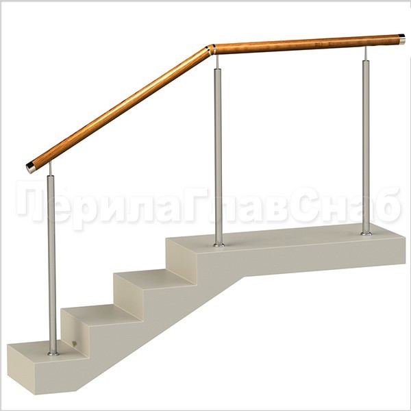 Три ригеля на сварке, квадратный деревянный поручень и круглые стойки