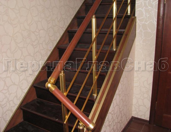 Лестничное ограждение с тремя ригелями и поручнем из латуни