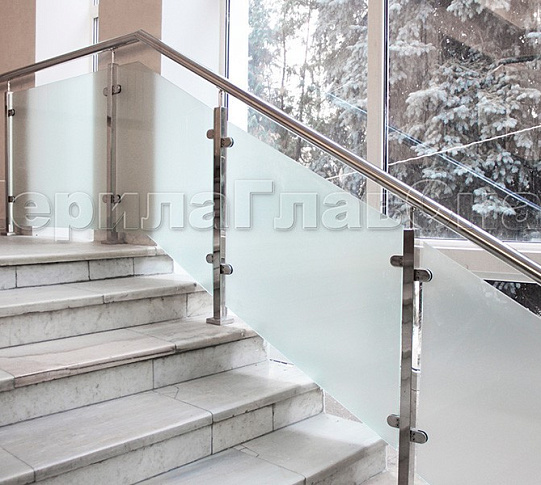 В таких ограждающих устройствах на окна используется каленое стекло 8-10мм. Стекло в оконных ограждениях может быть прозрачным, матовым или цветным. Очень красиво смотрится стекло под бронзу. Установка оконных стеклянных межэтажных ограждений осуществляется очень быстро, с использованием нами технологии чистый монтаж.