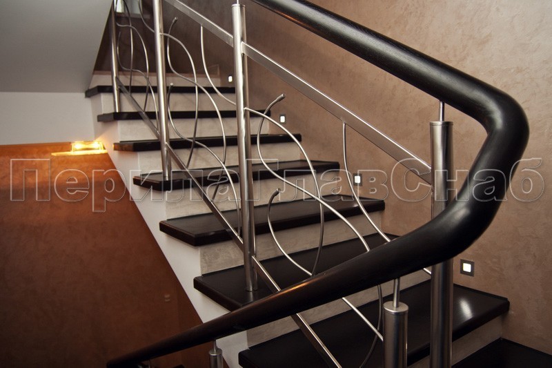 Нержавеющие ограждения без ригелей с круглым поручнем и стойками с деревянными вставками