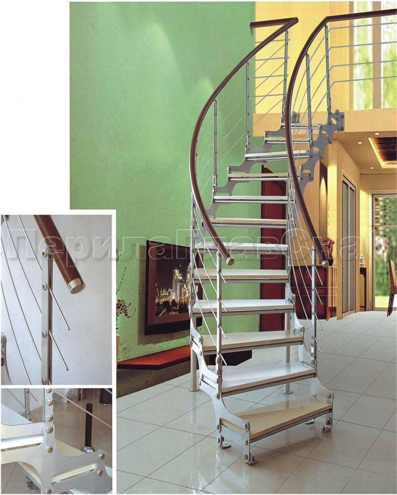 Два ригеля на держателях, круглый деревянный поручень и круглые стойки