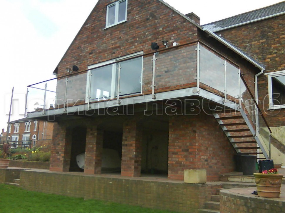Стеклянные ограждения для балкона с нержавеющими стойками.