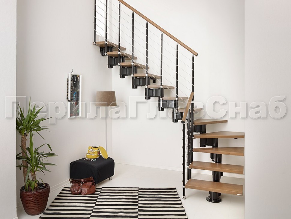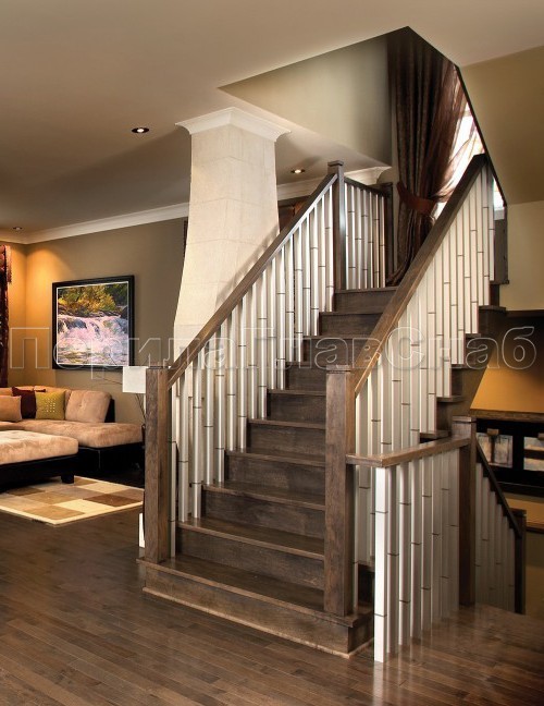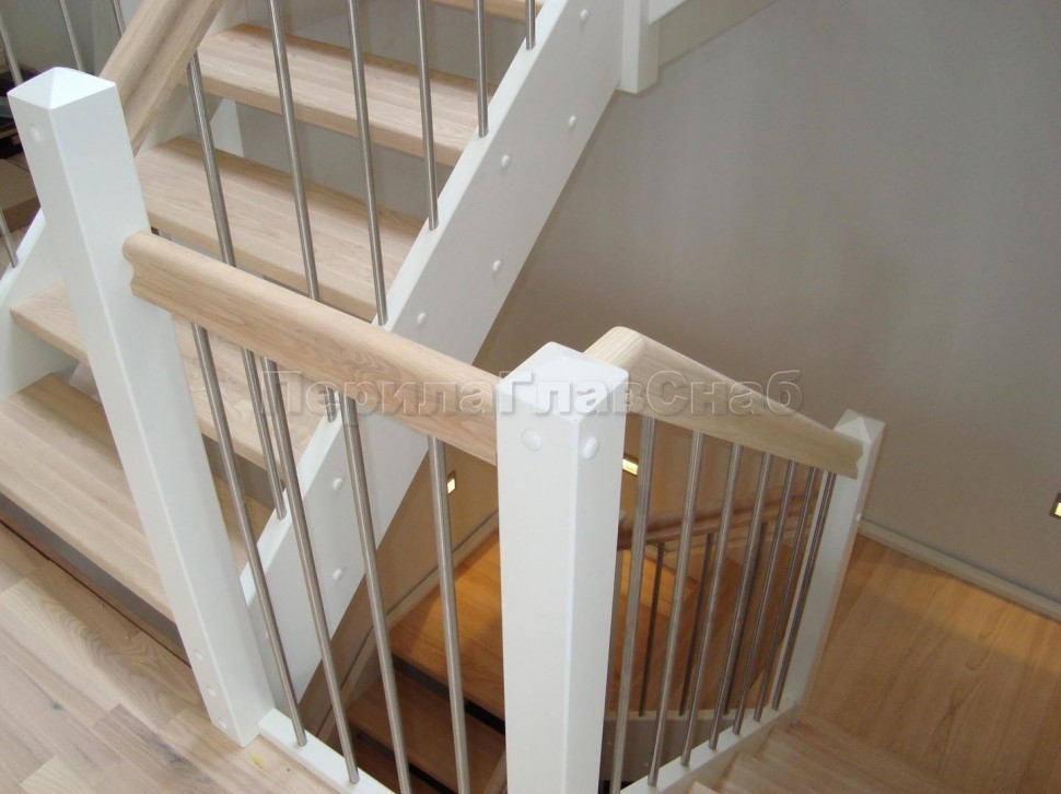 Ограждения со стойками в каждую ступень с квадратным деревянным поручнем без ригелей