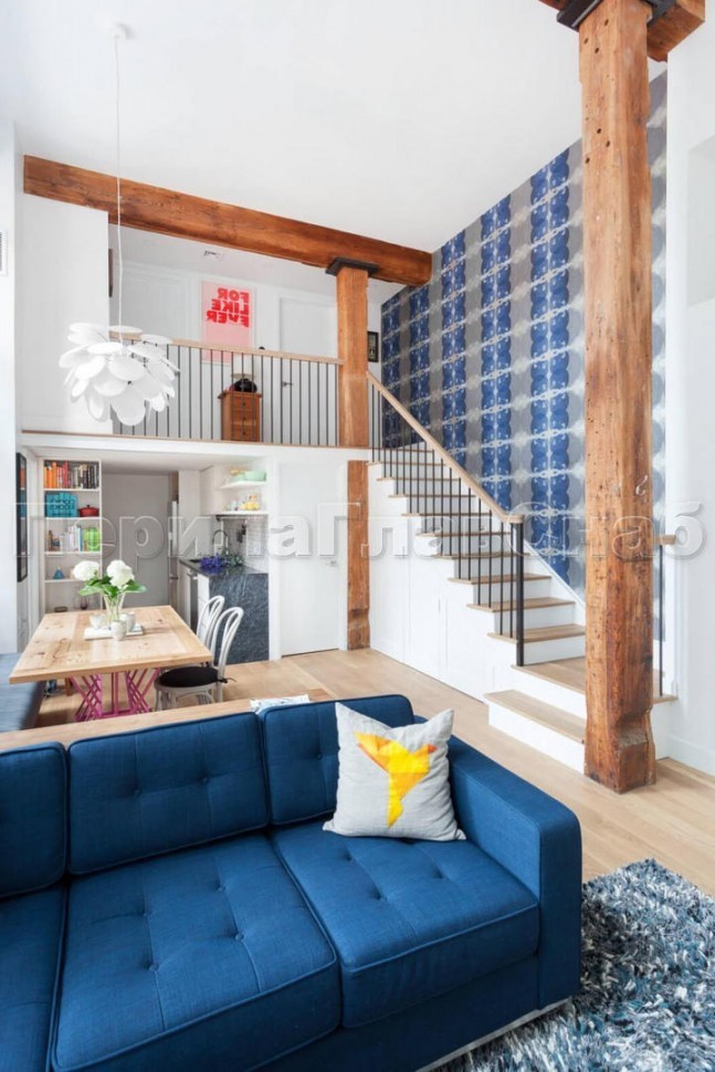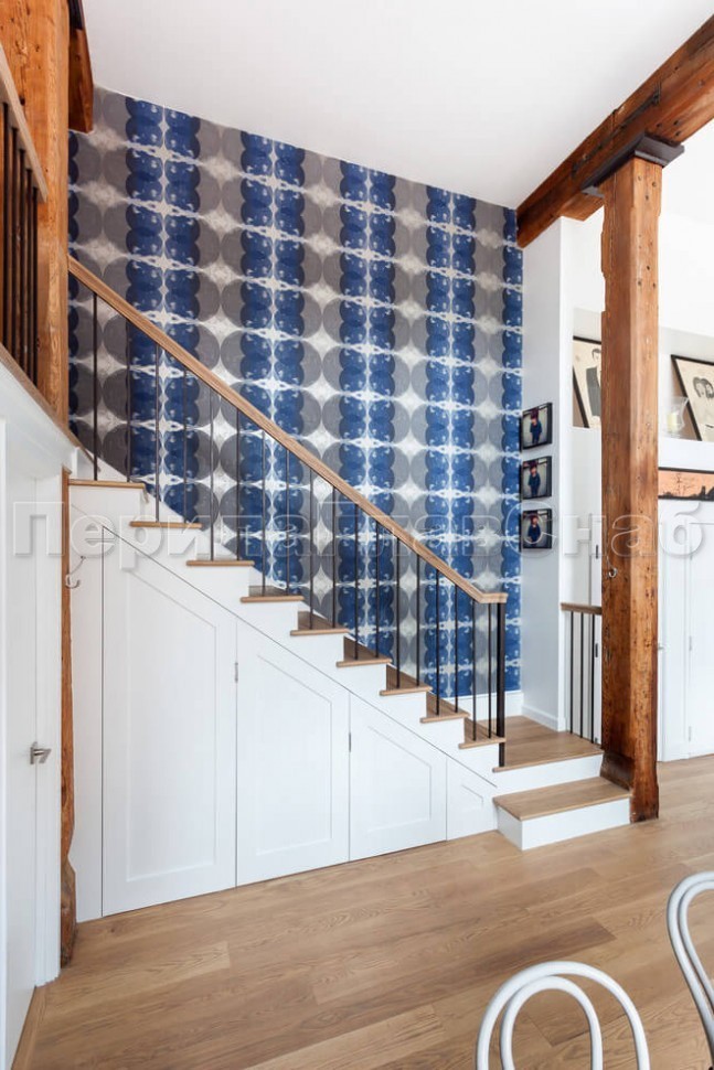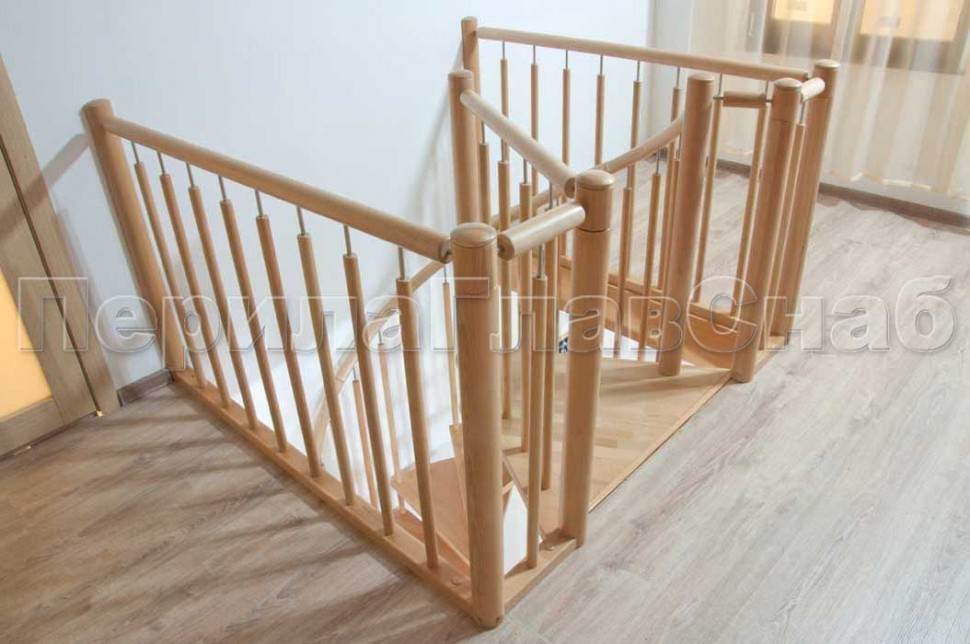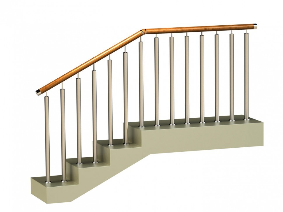 Четыре ригеля на держателях, квадратный деревянный поручень и квадратные стойки