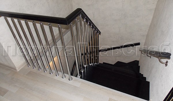 Ограждения с квадратным поручнем со стойками в каждую ступень без ригелей