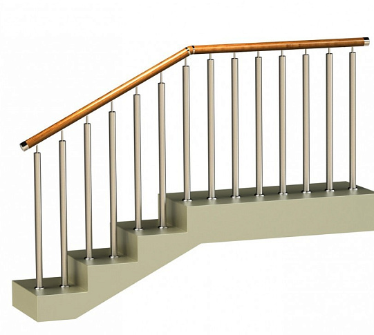 Ограждения с двумя стойками в каждую ступень с деревянным поручнем и без ригелей