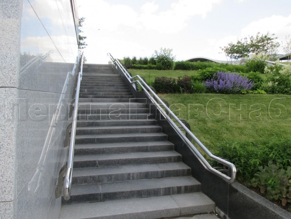 Ограждения с двумя стойками в каждую ступень с пластиковым поручнем и без ригелей