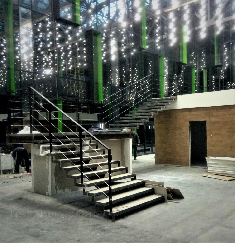 Ограждения из нержавейки. Заполнение из тросиков (нестандартная конфигурация) для крыльца