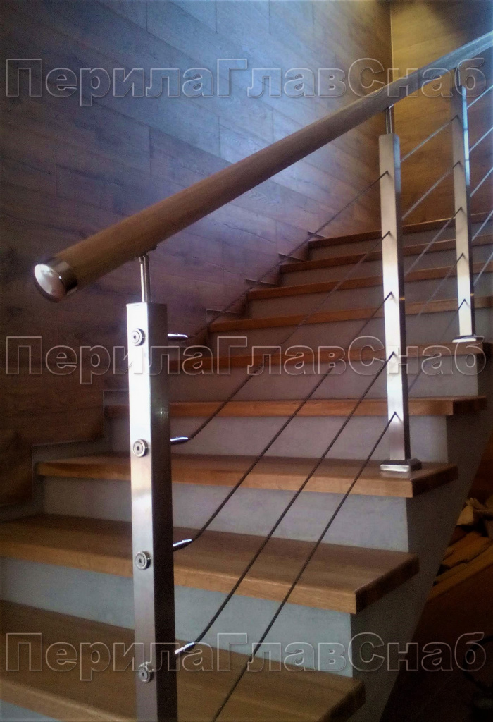 Ограждения из нержавейки. Заполнение из 2х тросиков. Квадратные стойки