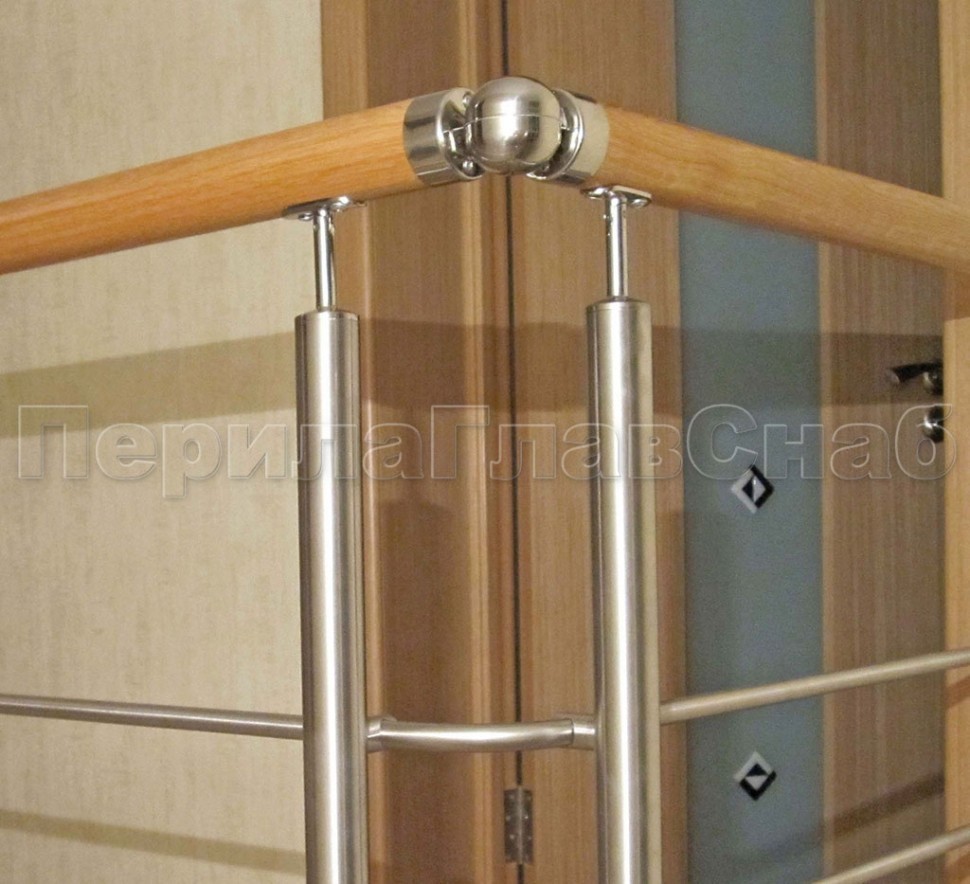 Нержавеющие ограждения без ригелей с круглым поручнем и стойками с деревянными вставками
