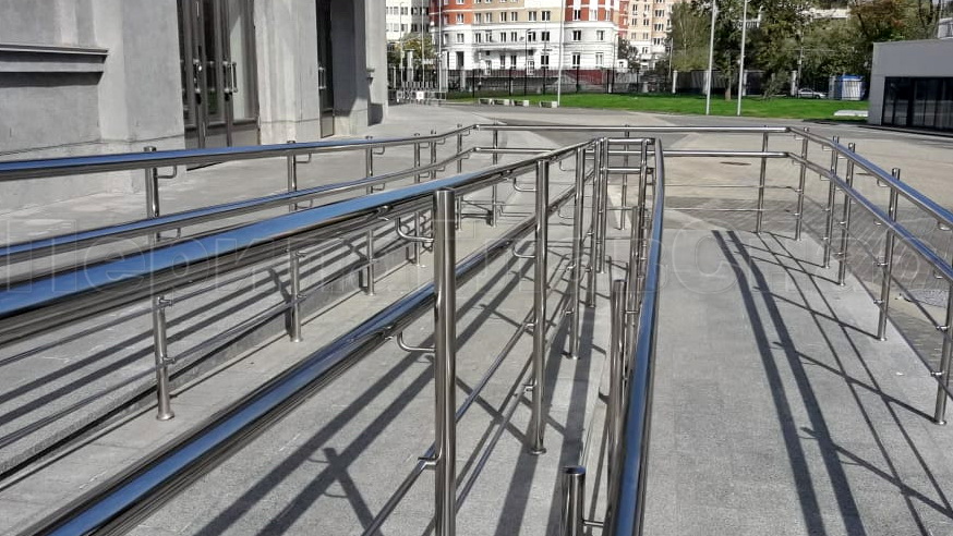 • Опорные перила из нержавейки для инвалидов-колясочников не должны иметь скользкую поверхность. В противном случае за них не будет удобно держаться.