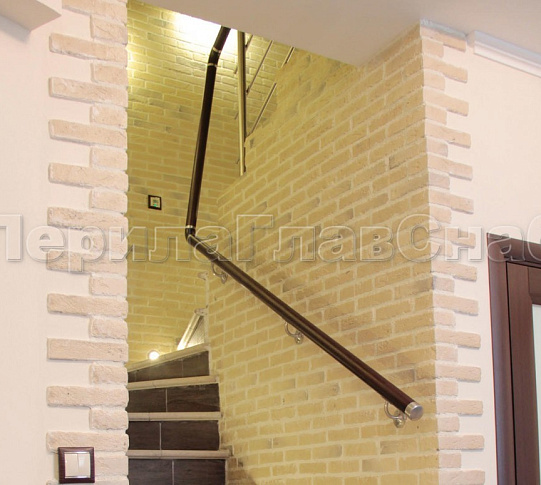 Лестничное ограждение с тремя ригелями и поручнем из латуни