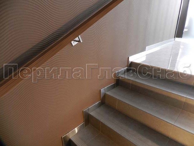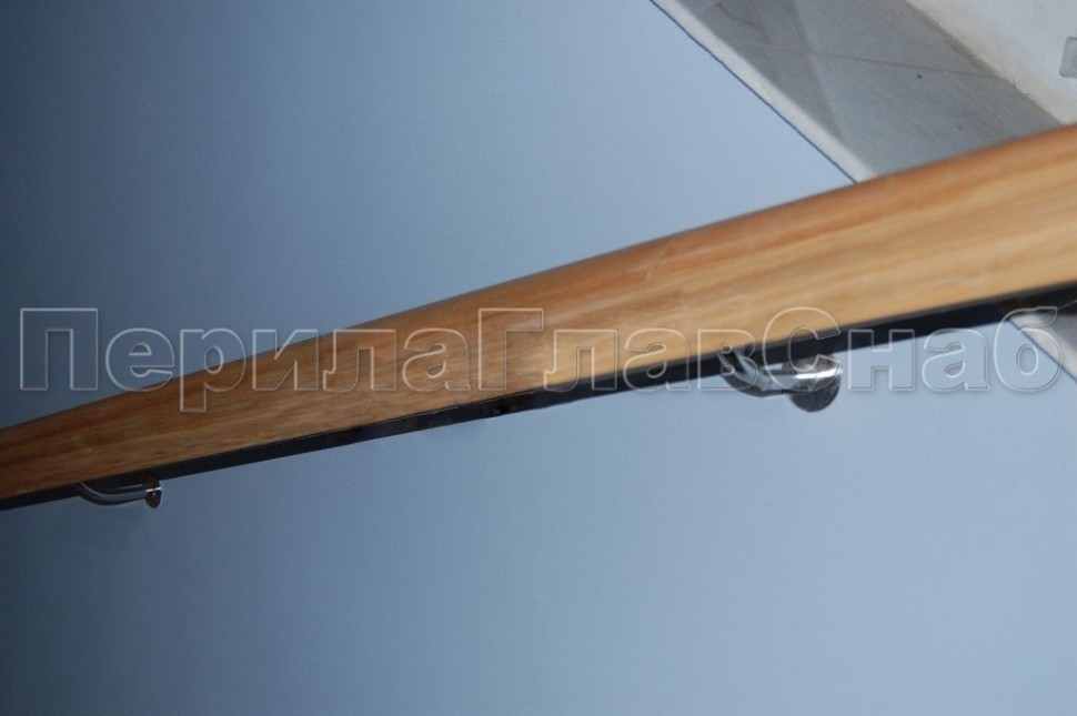 Нержавеющие детали деревянного пристенного поручня можно выбрать со шлифованной или полированной поверхностью. На премиум продукте хорошо смотрится матированная нержавейка (сатин).