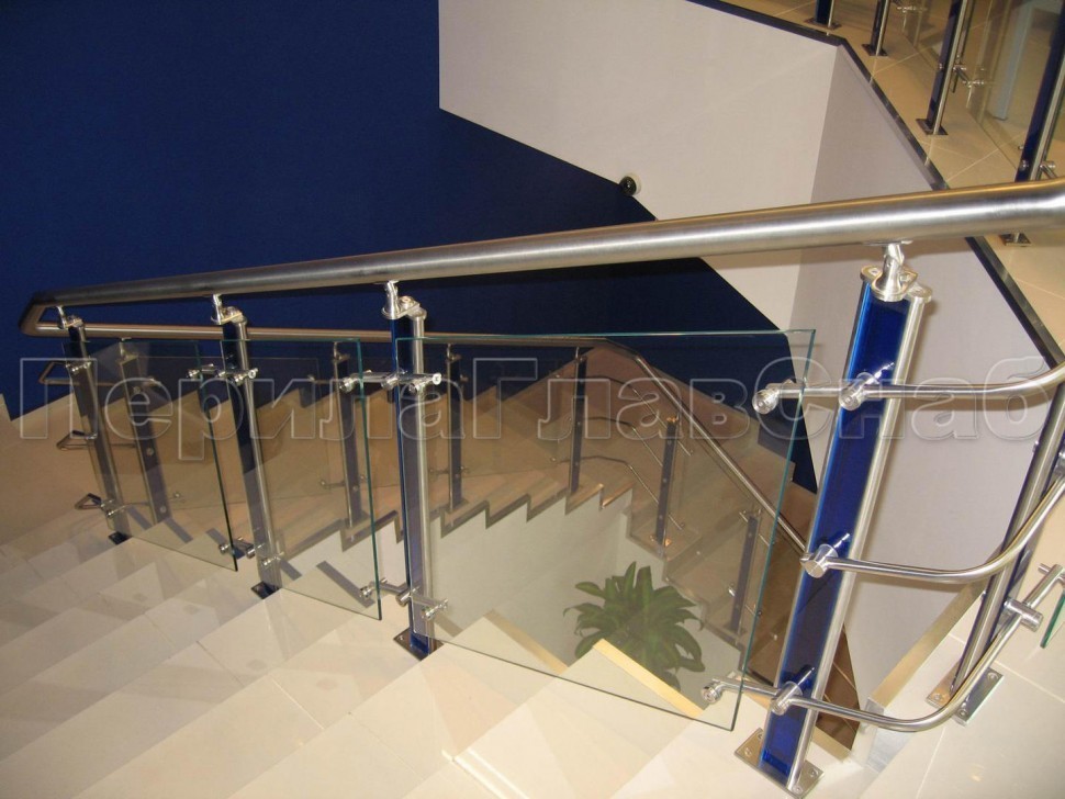Ограждение для лестницы из нержавейки с зажимными стеклодержателями для крыльца