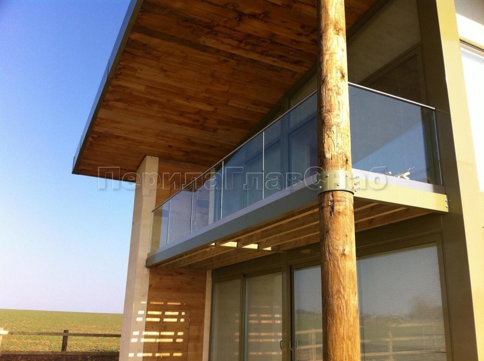 Ограждение с деревянным поручнем на выносе на точечном креплении