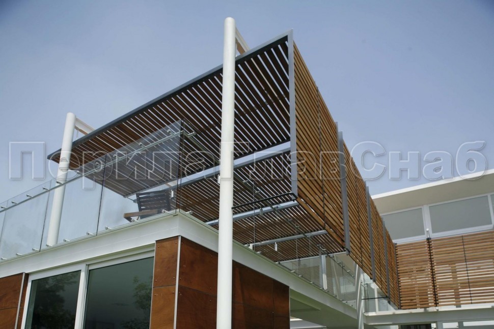 Ограждение с квадратным деревянным поручнем на точечном креплении