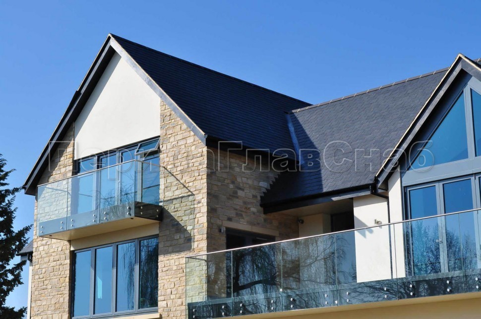 Ограждение с профильным поручнем с пазом на точечном креплении
