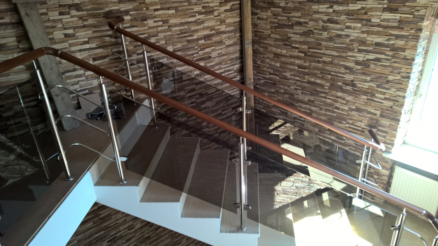 Ограждение с круглым деревянным поручнем с зажимными стеклодержателями и стойками с деревянными вставками в Волгограде. Готовые проекты ПерилаГлавСнаб - фото 1 Ограждение с круглым деревянным поручнем с зажимными стеклодержателями и стойками с деревянными вставками в Волгограде. Готовые проекты ПерилаГлавСнаб - фото 2
