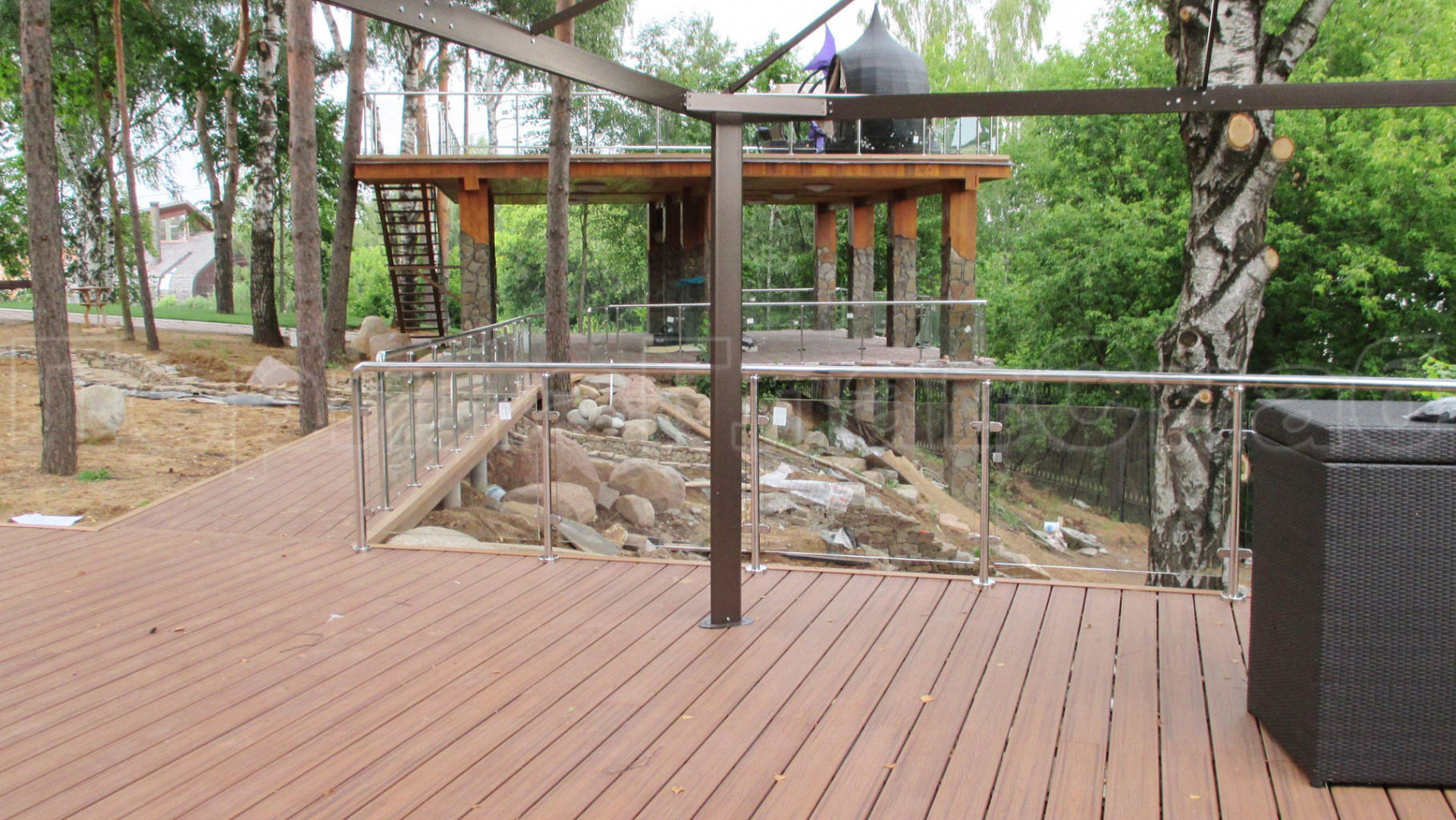 Ограждение с деревянным поручнем с зажимными стеклодержателями и стойками в Волгограде. Готовые проекты ПерилаГлавСнаб - фото 1 Ограждение с деревянным поручнем с зажимными стеклодержателями и стойками в Волгограде. Готовые проекты ПерилаГлавСнаб - фото 2