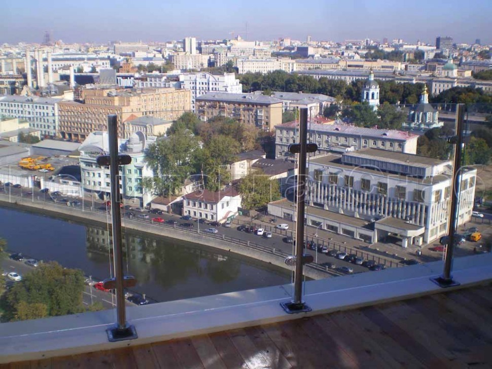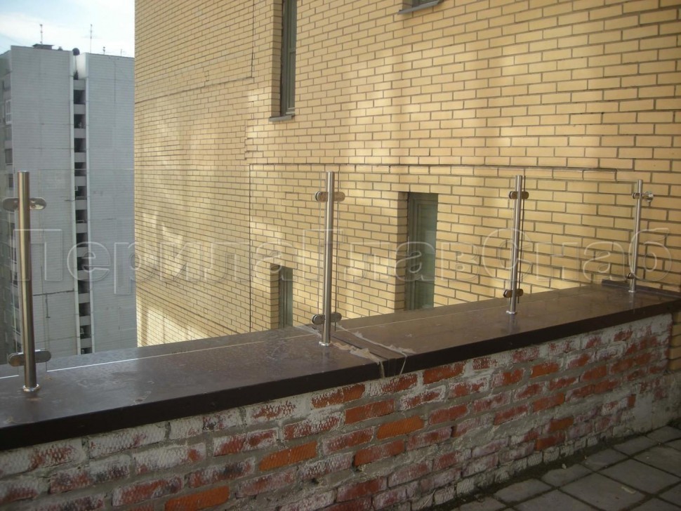 Ограждения лестницы без поручня с зажимными стеклодержателями и стойками