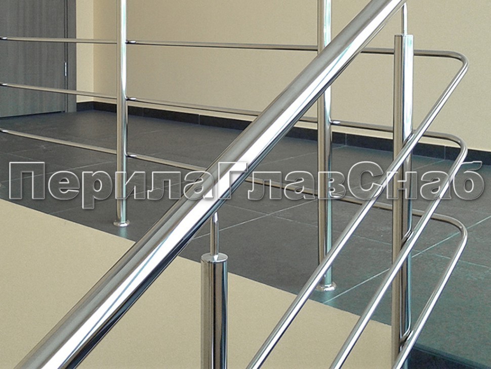 Два ригеля на держателях, круглый поручень и круглые стойки