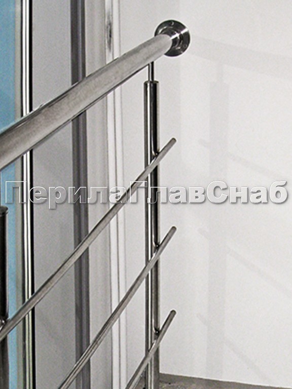 Четыре ригеля на держателях, круглый поручень и квадратные стойки