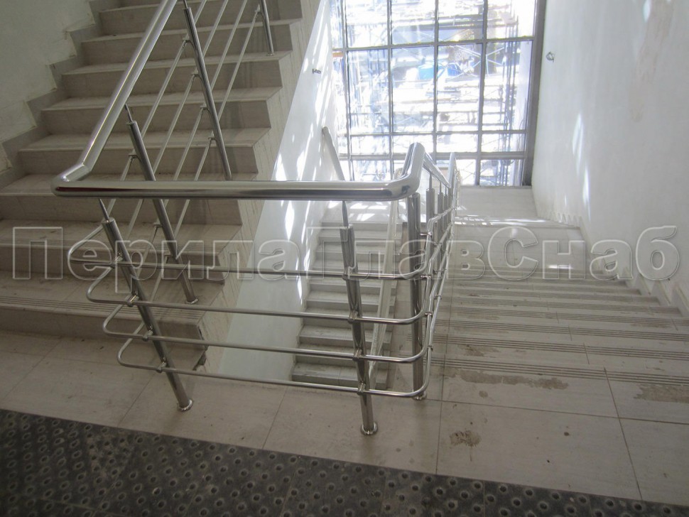 Четыре ригеля на сварке, квадратный поручень и круглые стойки