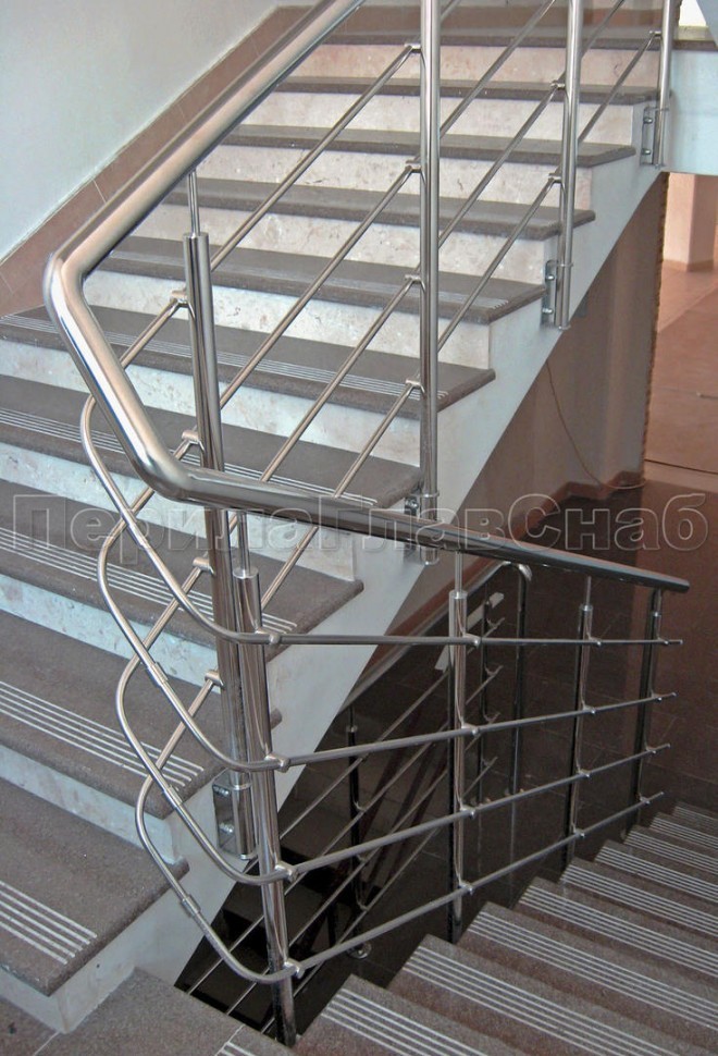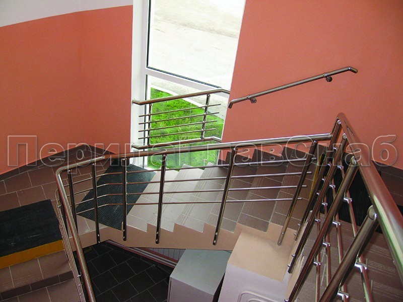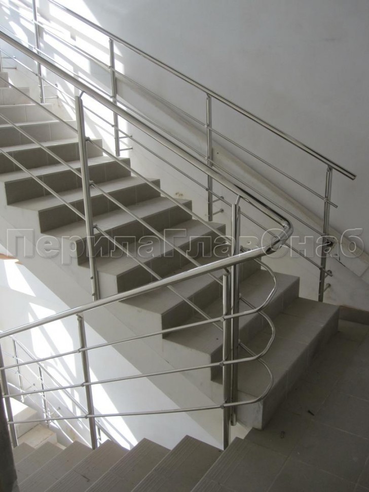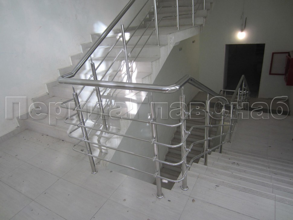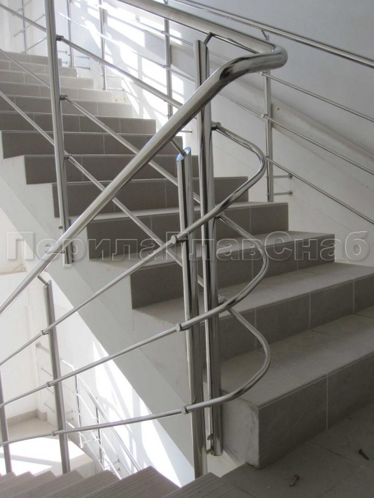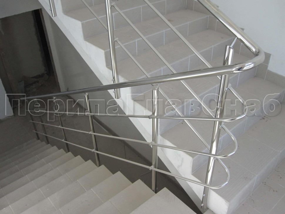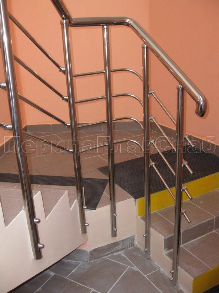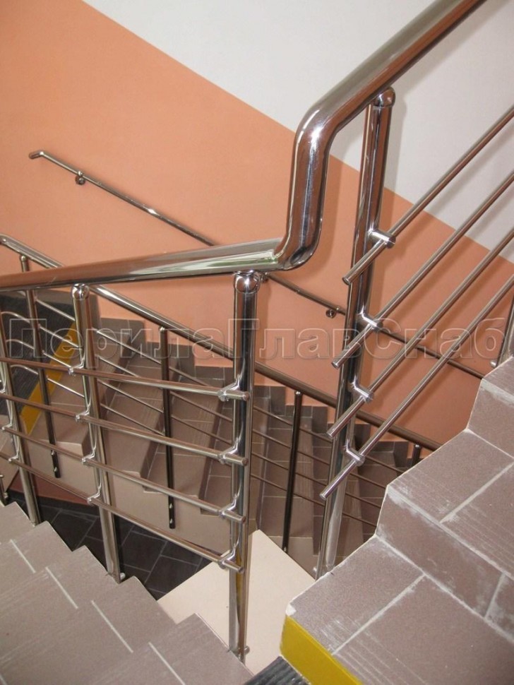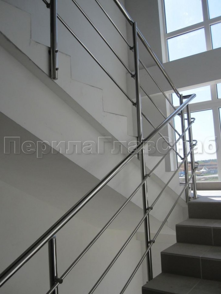 Четыре ригеля на сварке, круглый поручень и квадратные стойки
