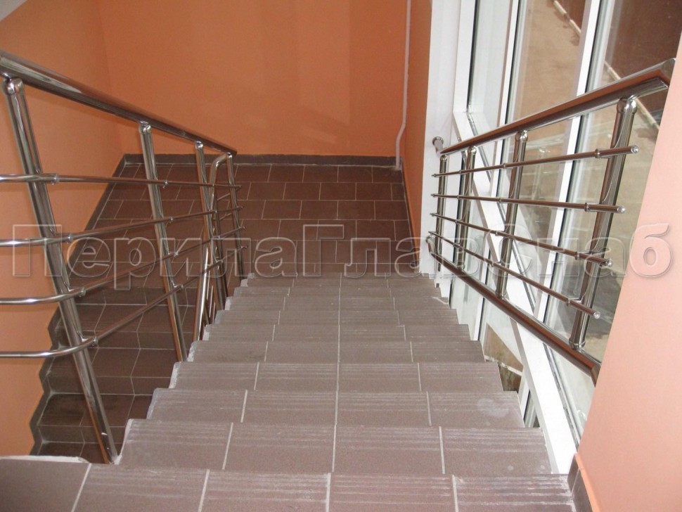 Нержавеющие ограждения для школ и детских садов с вертикальным заполнением “Частокол” - вариант №1 для крыльца