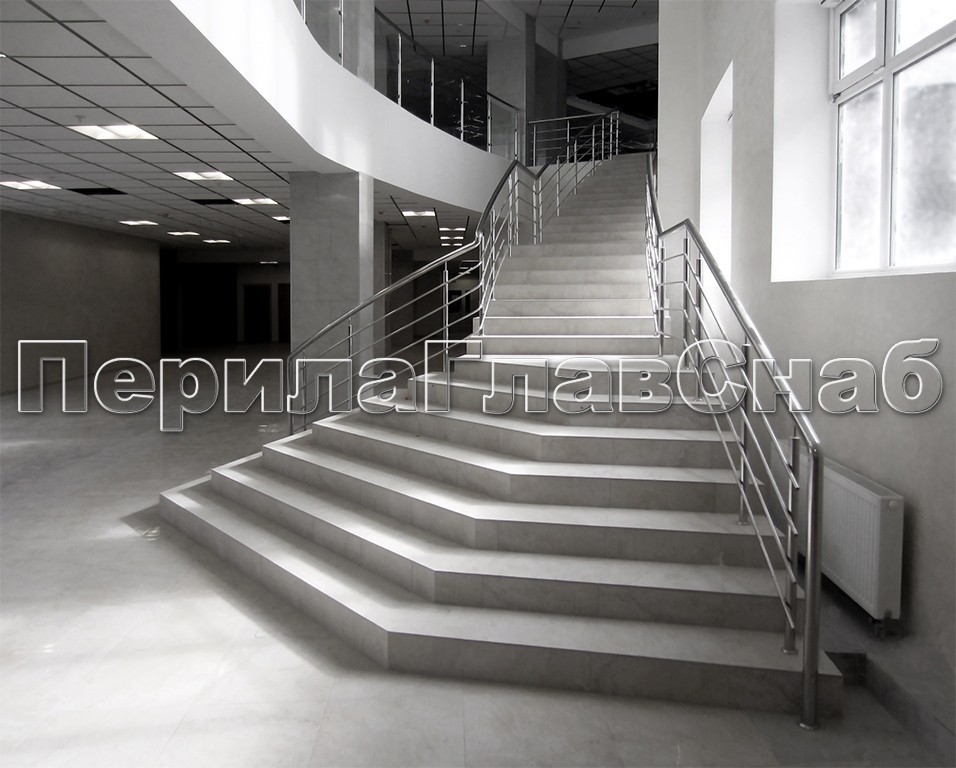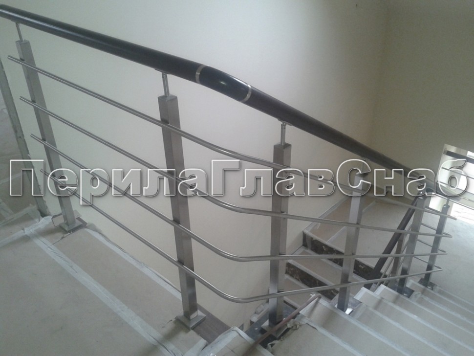 Записаться на встречу Четыре ригеля на держателях, квадратный поручень и круглые стойки